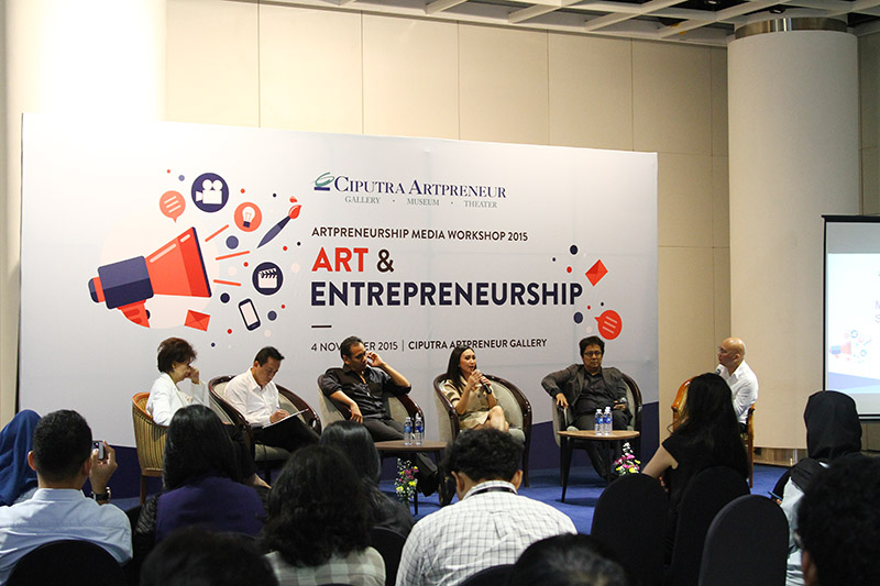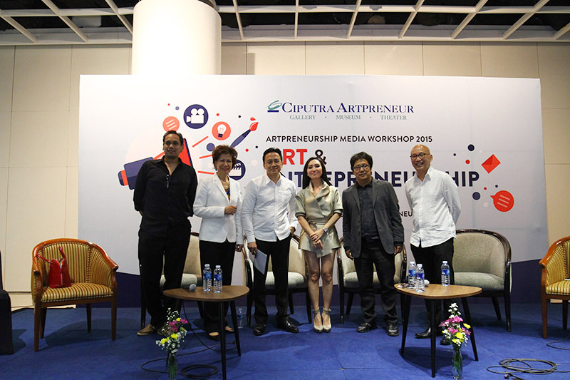 Ciputra Artpreneur as facilitators of arts and entrepereneurship development efforts in Indonesia invites media colleagues in Media Arts and Entrepreneurship Workshop. On this occasion Artpreneur concept, namely the incorporation of Arts and Enterpreneruship will be discussed more in the joint head of the Creative Economy - Mr. Triawan Munaf, Mrs. Rina Ciputra Sastrawinata and art workers representatives that have proven successful in the field of film art, music and the art of fashion design.