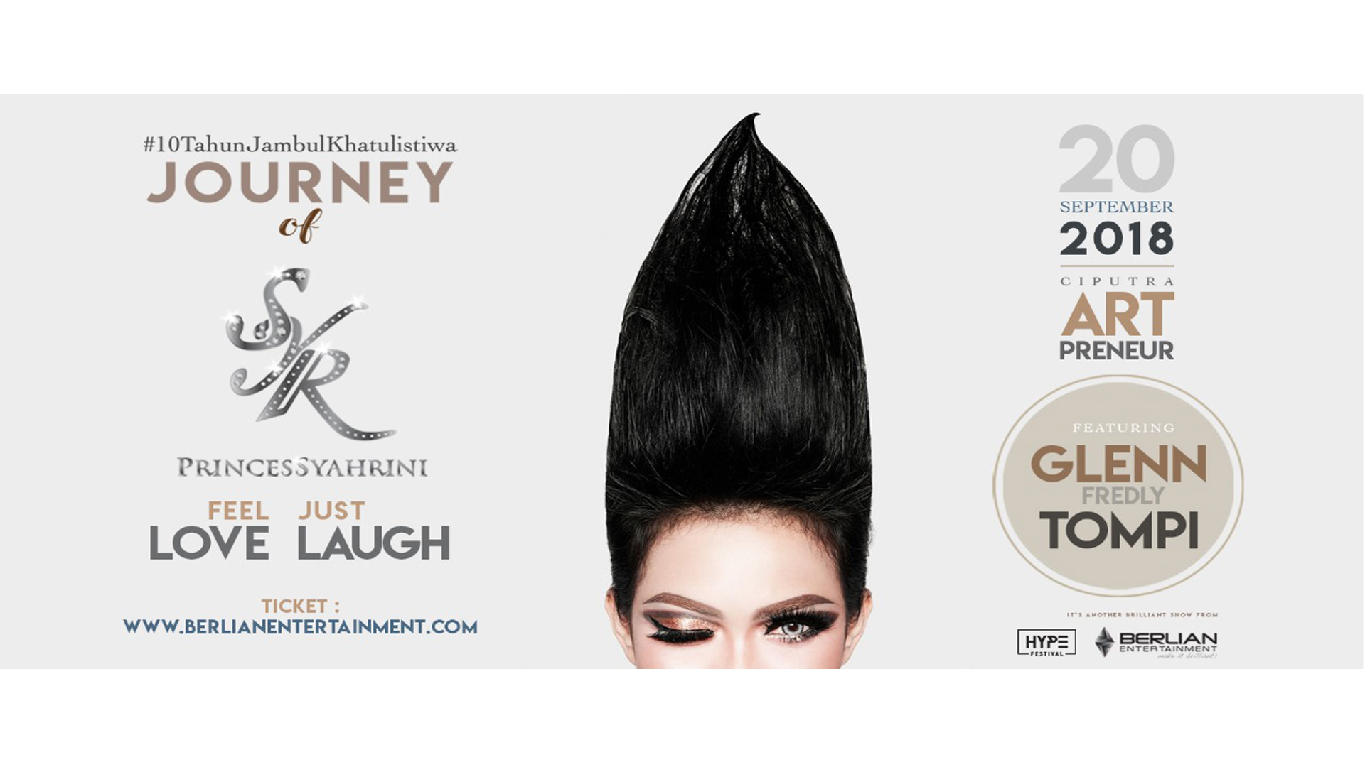 10 years of works in Indonesia's music industry, Princess Syahrini we know with a variety of unique jargon and appearance that is always unique and phenomenal, will present greet you all with DIFFERENT CONCEPT, by giving LOVE and LAUGH through concert #10TahunJambulKhatulistiwa Journey of Syahrini on 20 September 2018.